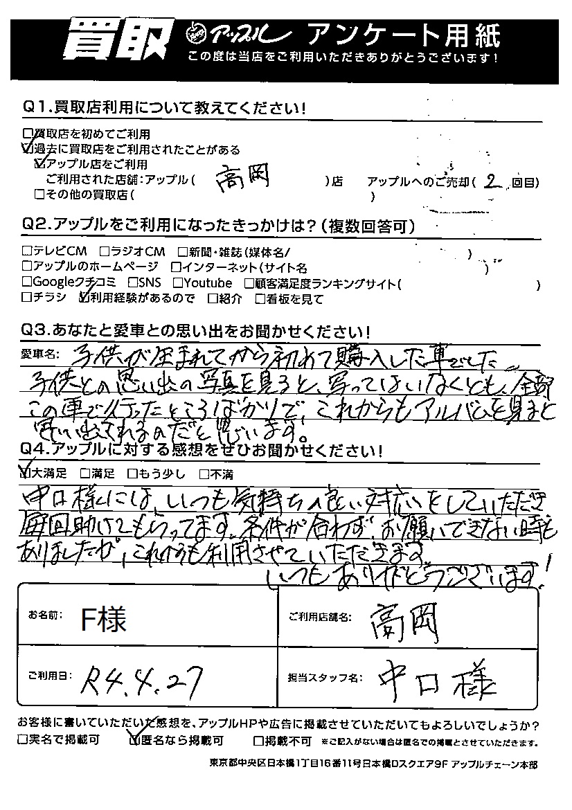 A:アップル高岡店ご利用2度目