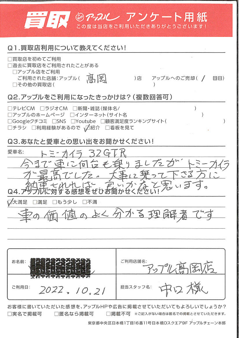 富山県高岡市 S.T様 車名:日産 スカイラインGT-R
