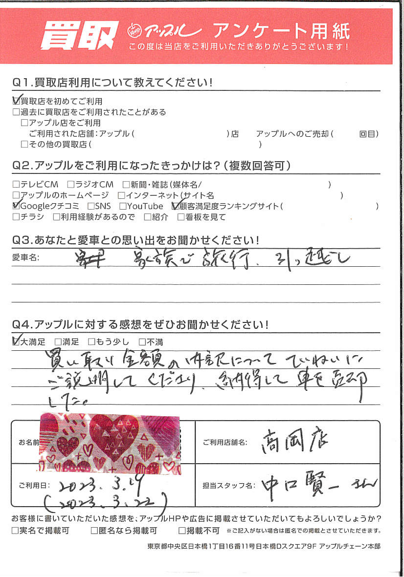 星の数ほどある買取店や中古車販売店がある中からアップル高岡店にてご契約頂き