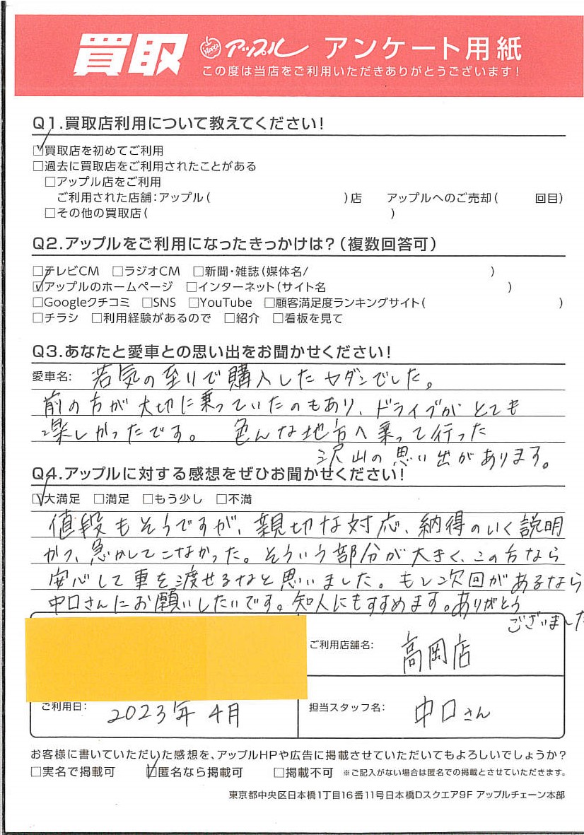 そういう部分が大きく、この方なら安心して車を渡せるなと思いました。