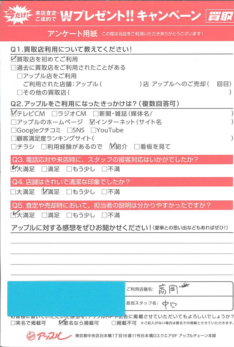 ご契約とご入庫後にご自宅までお送りする際ようやく笑っていただけたのが何よりでした。