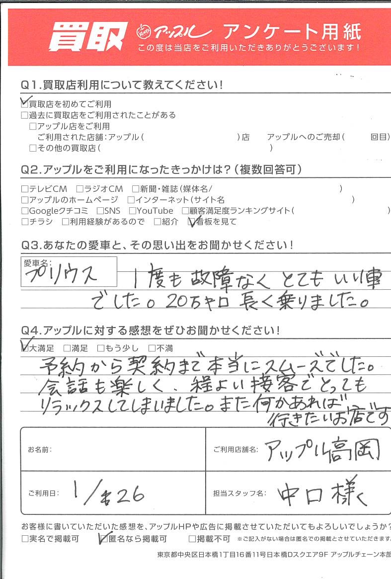 富山県高岡市 C.M様 車名:トヨタ プリウス(2023年3月~のPHVを含む)