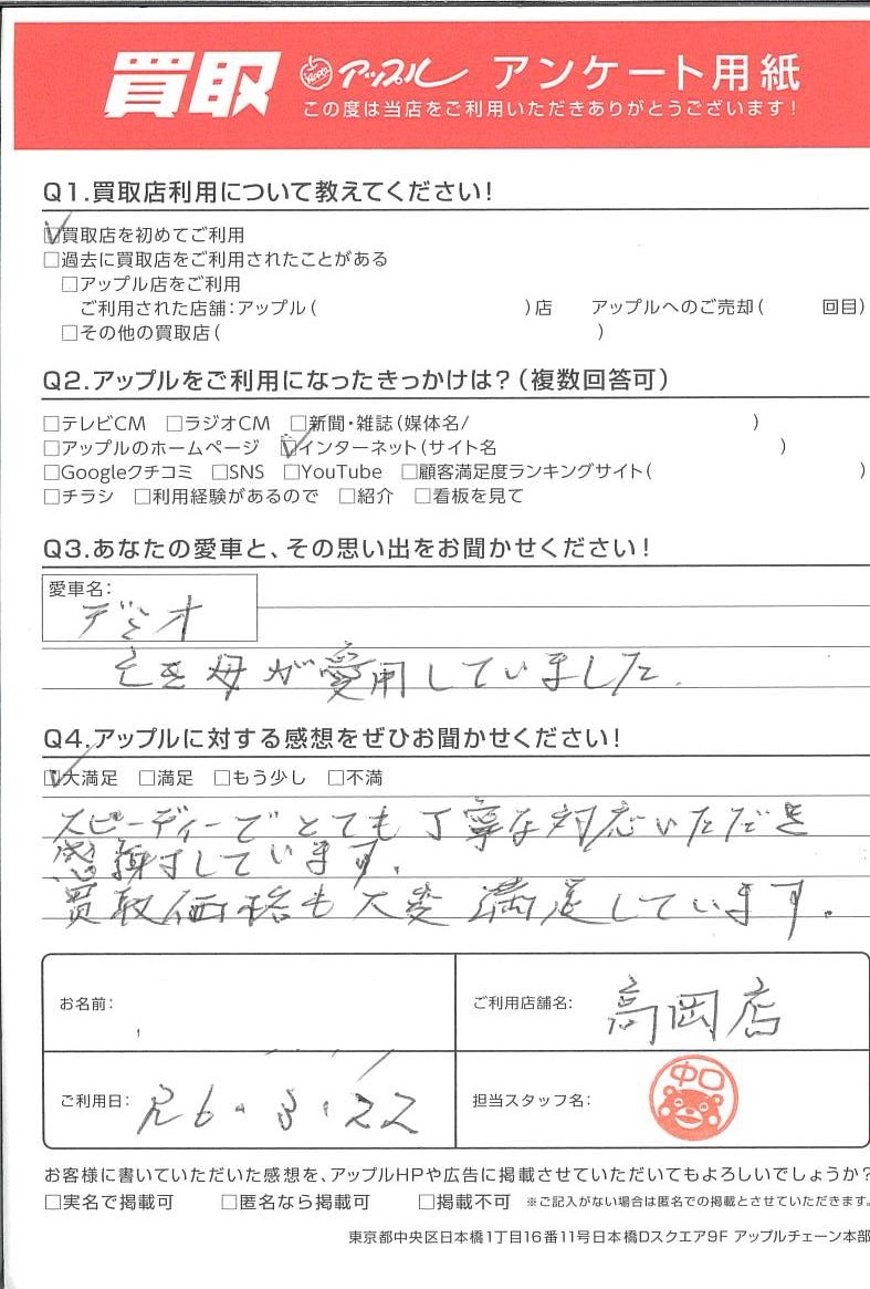 富山県氷見市 K.M様 車名:マツダ デミオ