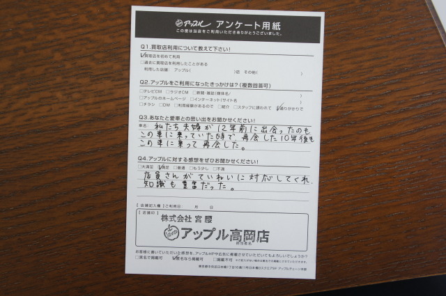 この度はアップル高岡店ご利用ありがとうございました。