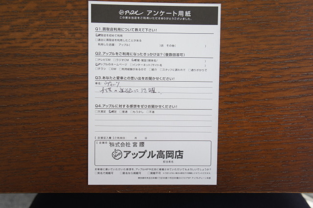 またの機会あれば、また知人等でのお車のご売却考えていらっしゃる方のご紹介もお待ち申し上げております。