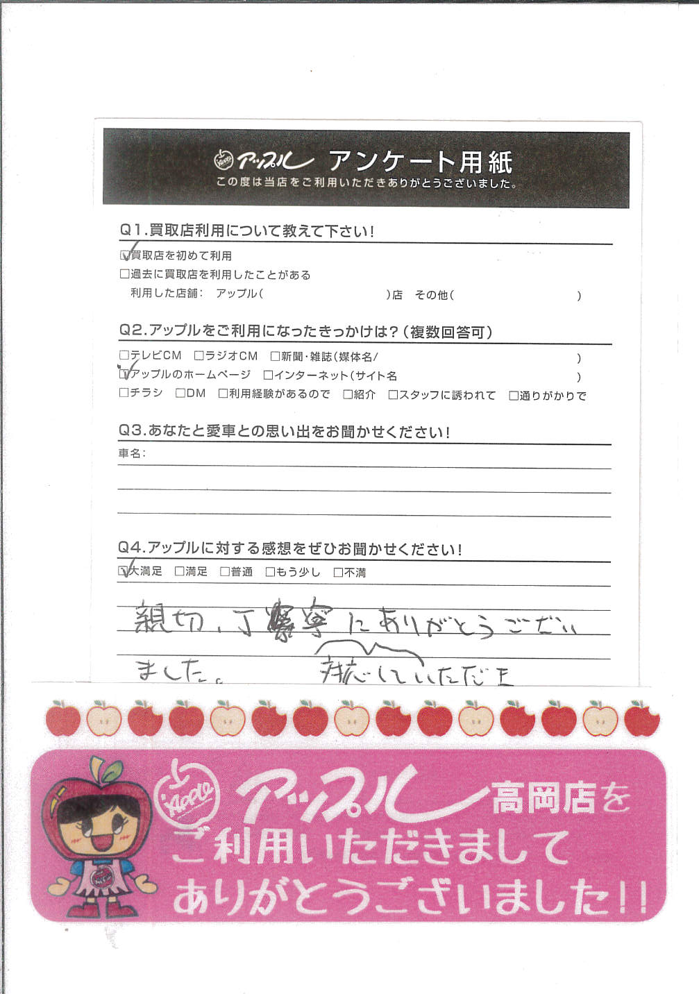 アップル本部の査定依頼よりお問い合わせ頂き、ご来店いただきました。数ある買取店の中、当店でのご契約誠にありがとうございました。またのご来店・ご利用お待ち申し上げております。また知人等でのご売却の話があればご紹介いただけたらと思います。
