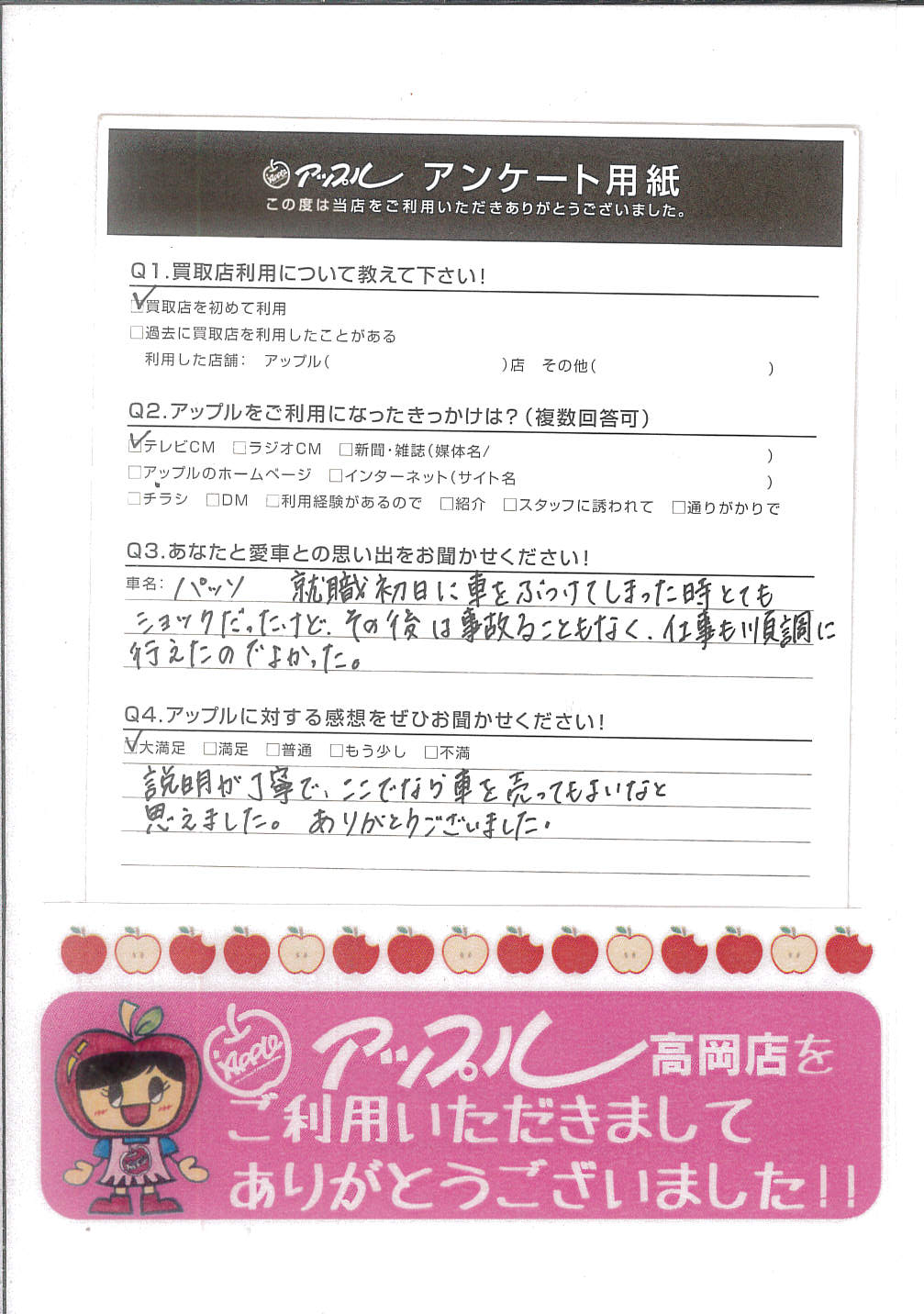 富山県南砺市 T.T様 車名:トヨタ パッソ