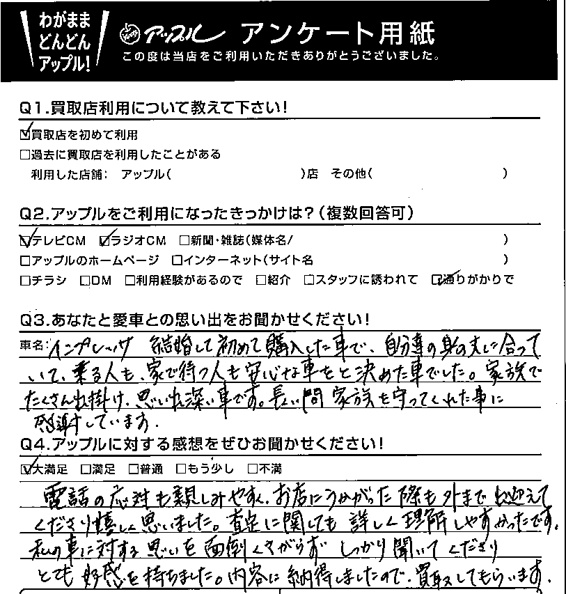 私の車に対する思いを面倒くさがらず、しっかり聞いてくださり、とても好感を持ちました。
