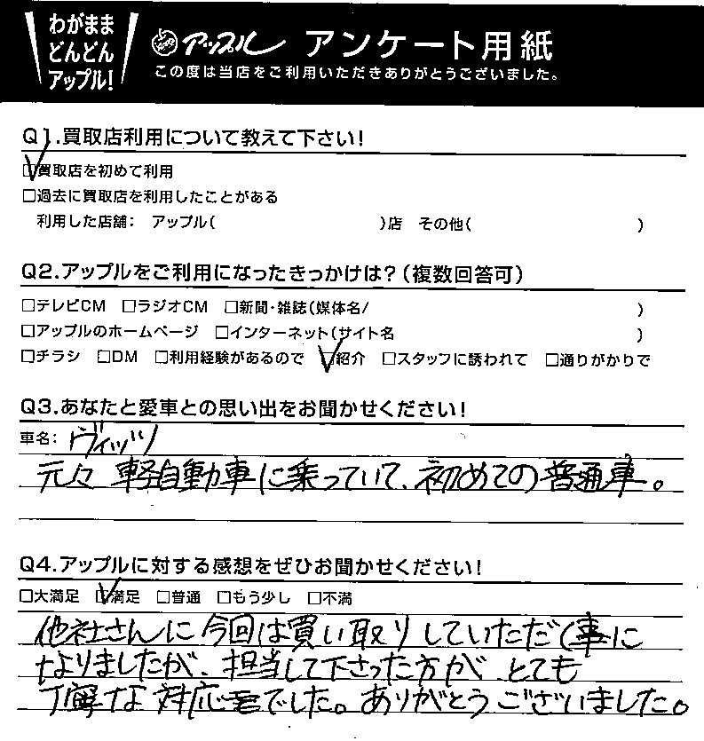 秋田県 匿名様 車名:トヨタ ヴィッツ