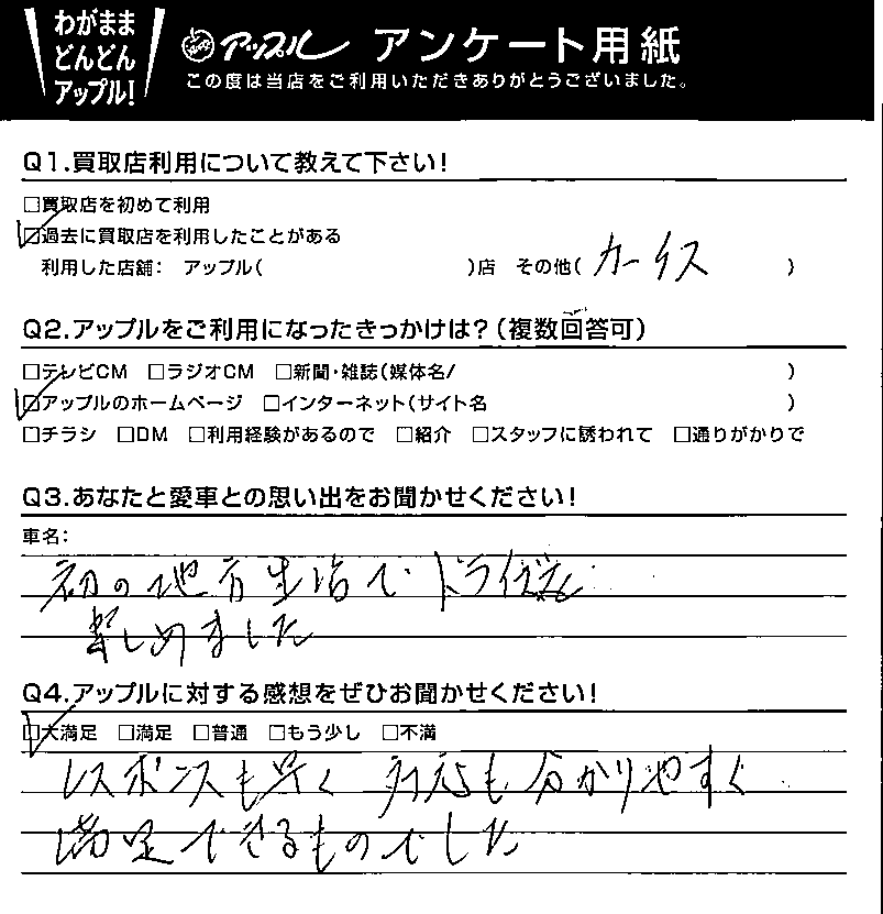 A.レスポンスも早く、対応も分かりやすく満足できるものでした。