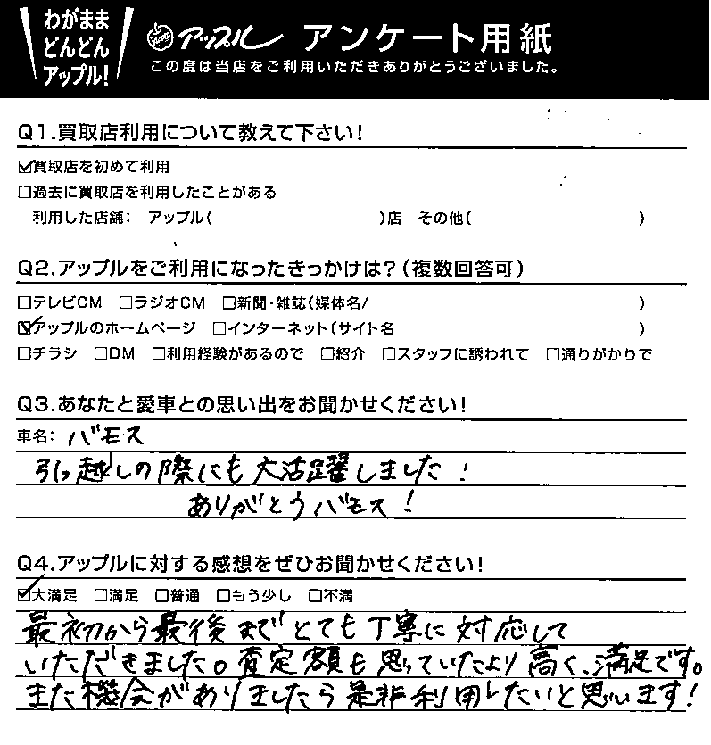 A.引っ越しの際にも大活躍しました。 ありがとう バモス!!