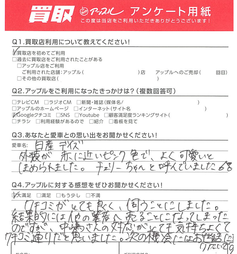 Q. あなたと愛車(デイズ)との思い出をお聞かせください!