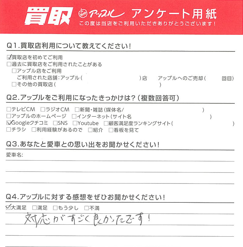 A.対応がすごく良かったです!