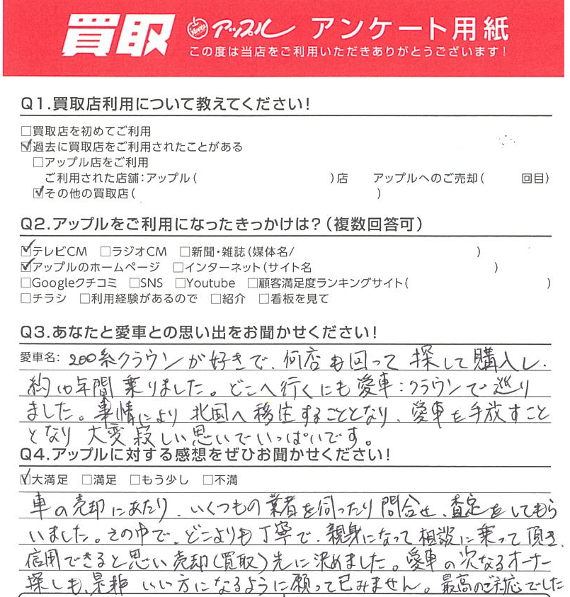 A.200系クラウンが好きで、何店も回って探して購入し、約10年間乗りました。