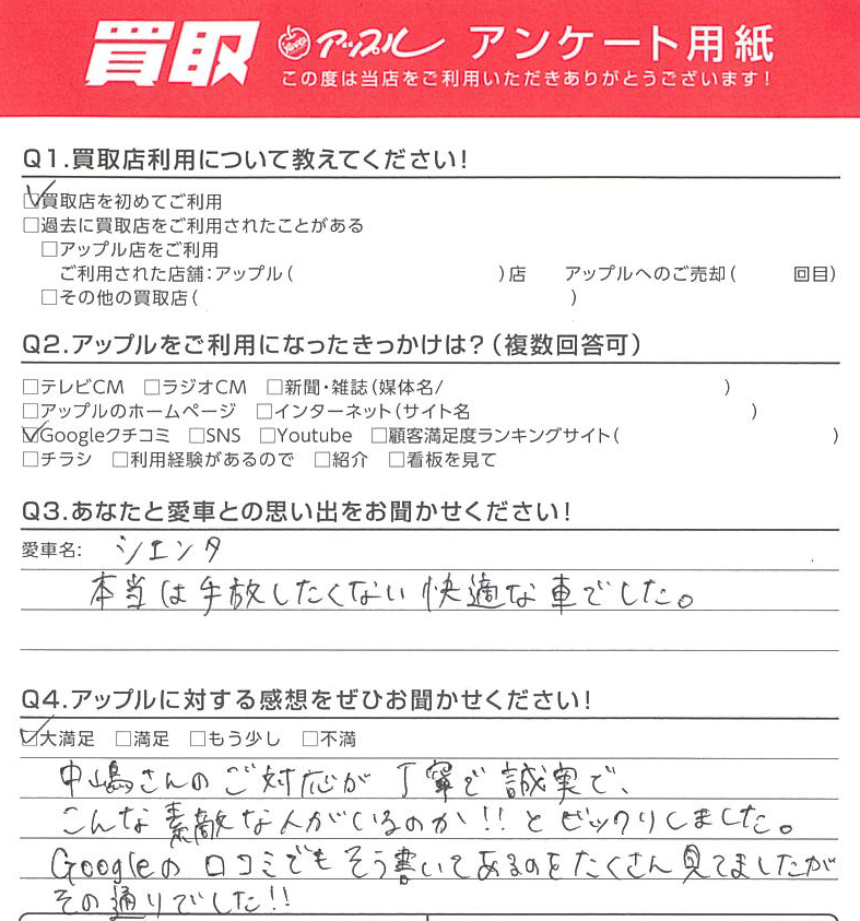 Q.あなたと愛車(シエンタ)との思い出をお聞かせください!