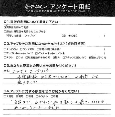 自宅まで、わざわざ車を取りに来て頂き、ありがとうございました。