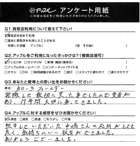 就職して最初に買った車でしたので愛着があり、17年間大切に乗ってきました。