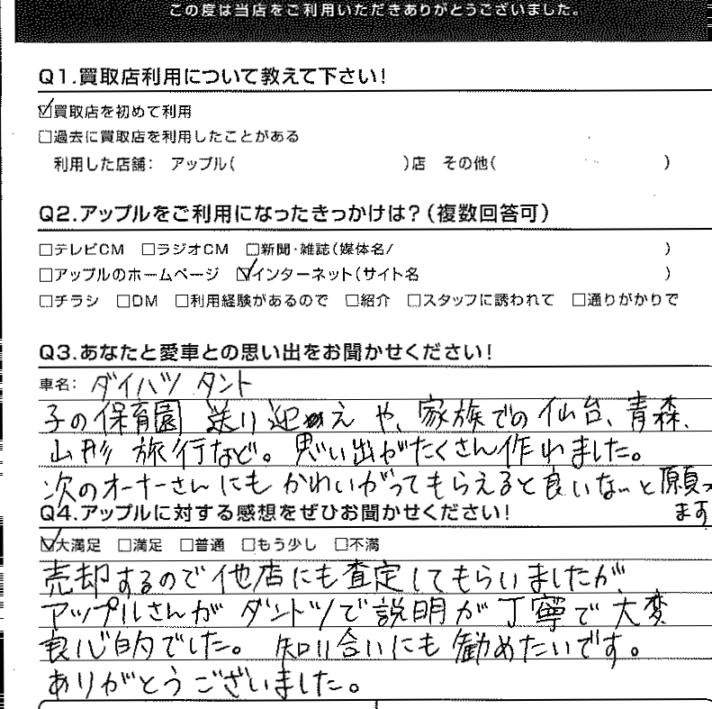 売却するので、他店にも査定してもらいましたが、アップルさんがダントツで説明が丁寧で大変良心的でした。