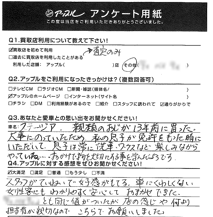 ☆あなたと愛車(ステージア)との思い出をお聞かせください☆