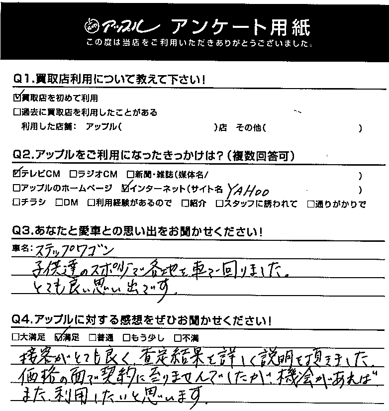 秋田県 匿名様 車名:ホンダ ステップワゴン