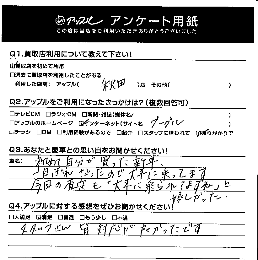 今回の査定も「大事に乗られてますね」と嬉しかった。
