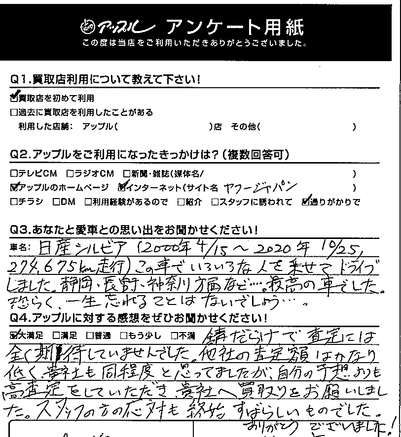 秋田県 佐藤 久文様 車名:日産 シルビア