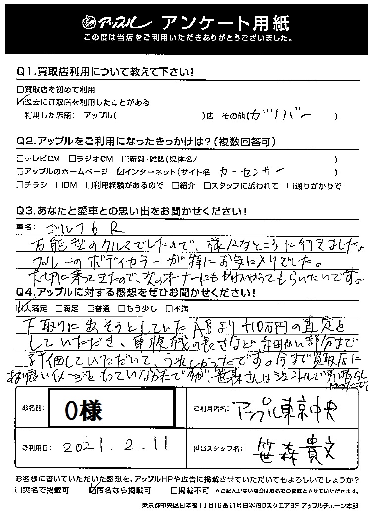 O様  車名:フォルクスワーゲン ゴルフ