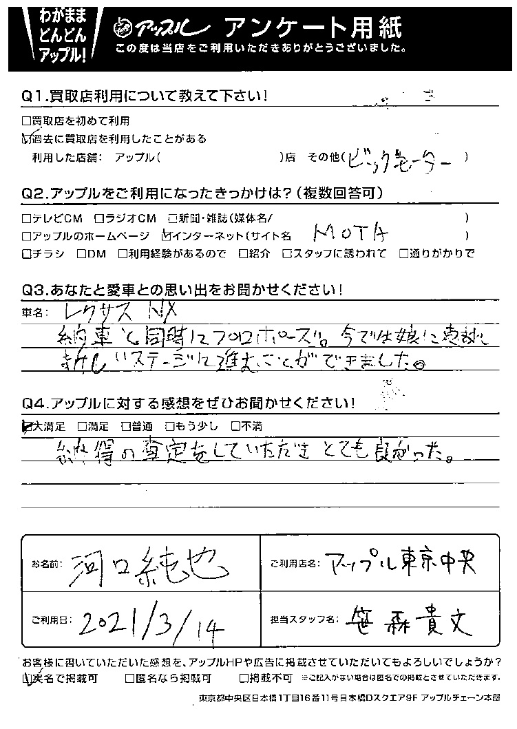 納得の査定をしていただきとても良かった。