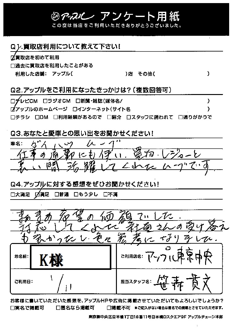 K様 車名:ダイハツ ムーヴ