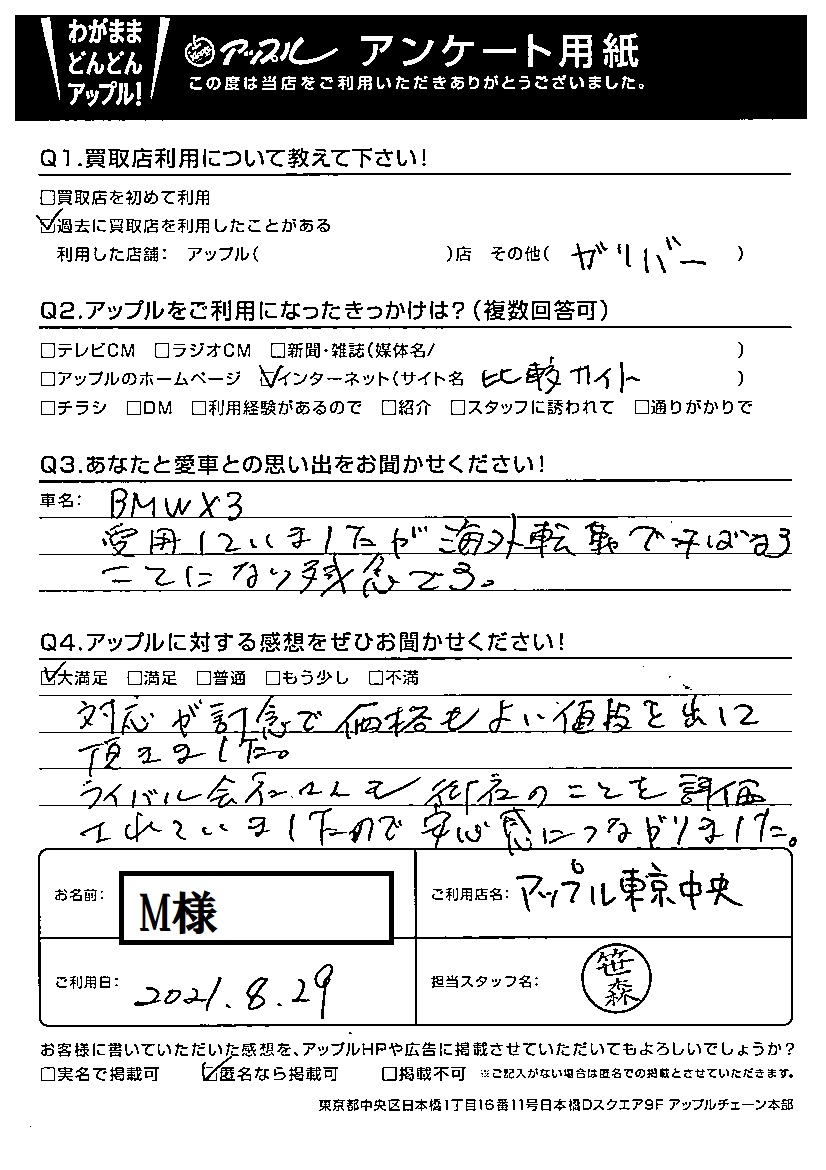 M様  車名:BMW X3