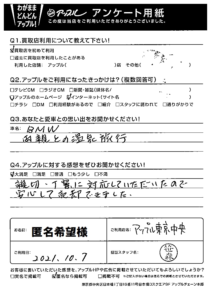 匿名希望様 車名:BMW