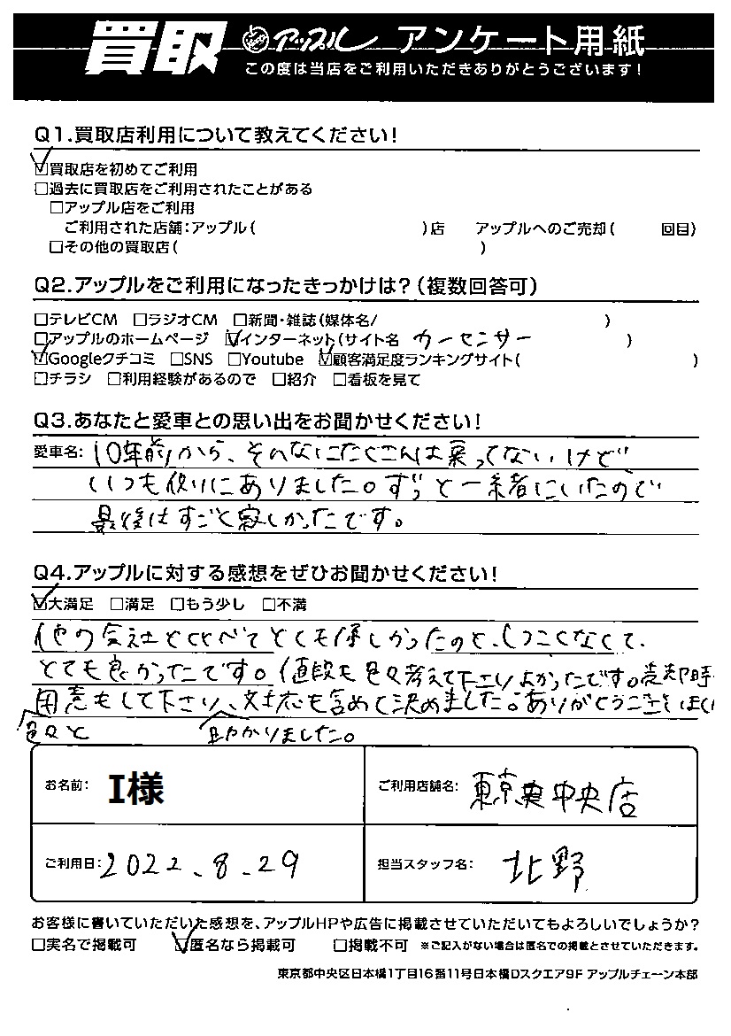 値段も色々考えて下さりよかったです。売却時色々と用意もして下さり、助かりました。