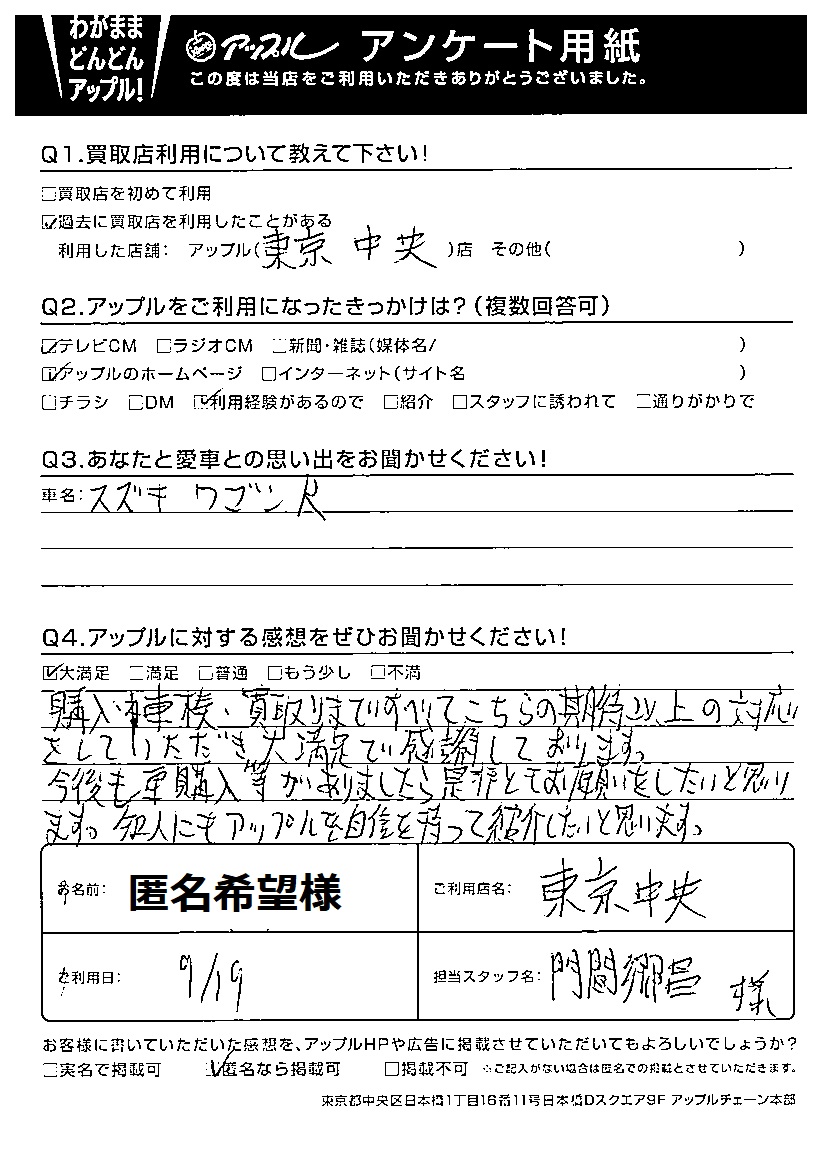 匿名希望様 車名:スズキ ワゴンR