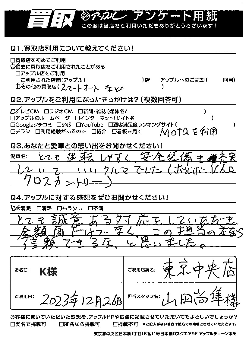 とても誠意ある対応をしていただき、金額面だけでなくこの担当の方なら信頼できるな、と思いました。