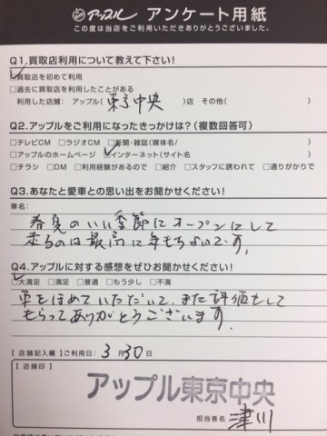 車をほめていただいて、また評価もしてもらってありがとうございます。