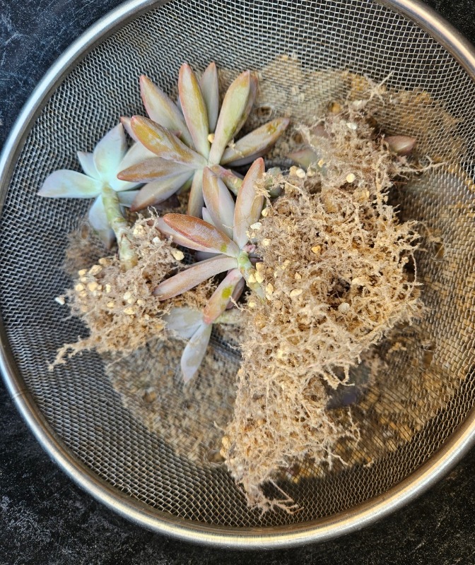 ①鉢から多肉を全部取ってあげます。⇩