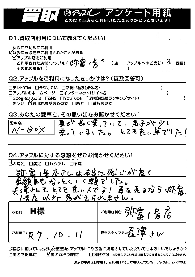 H様 車名:ホンダ N-BOX