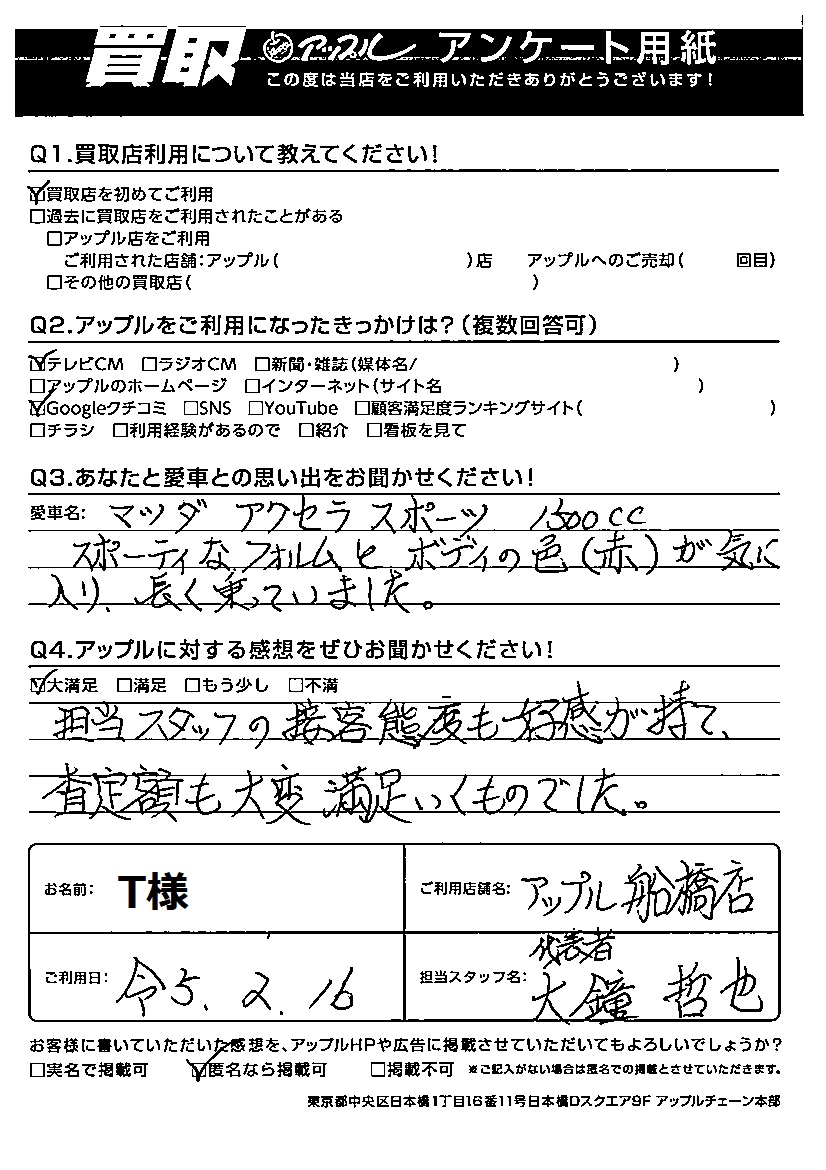 T様  車名:マツダ アクセラスポーツ