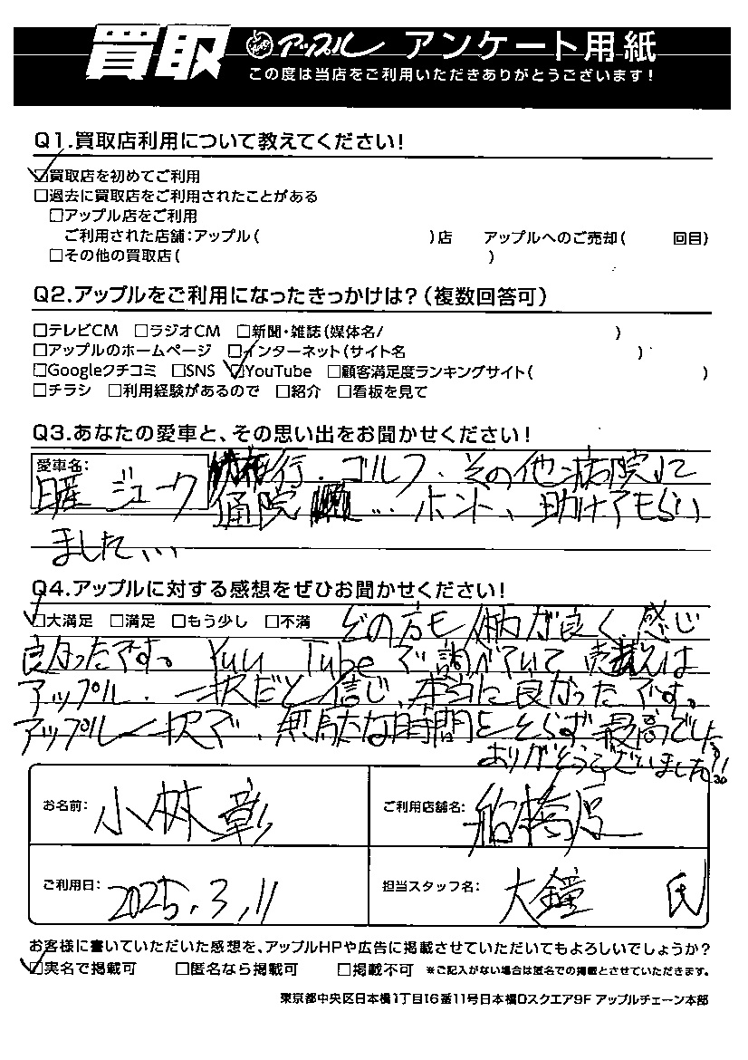 K様 車名:日産 ジューク