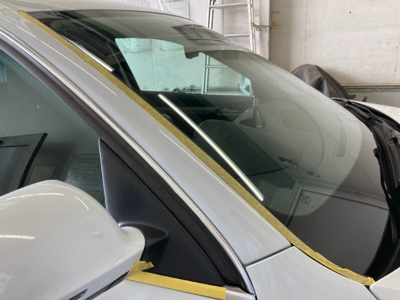 下準備としては樹脂やガラス部分などにコンパウンドがつかないようにマスキングテープで養生します。