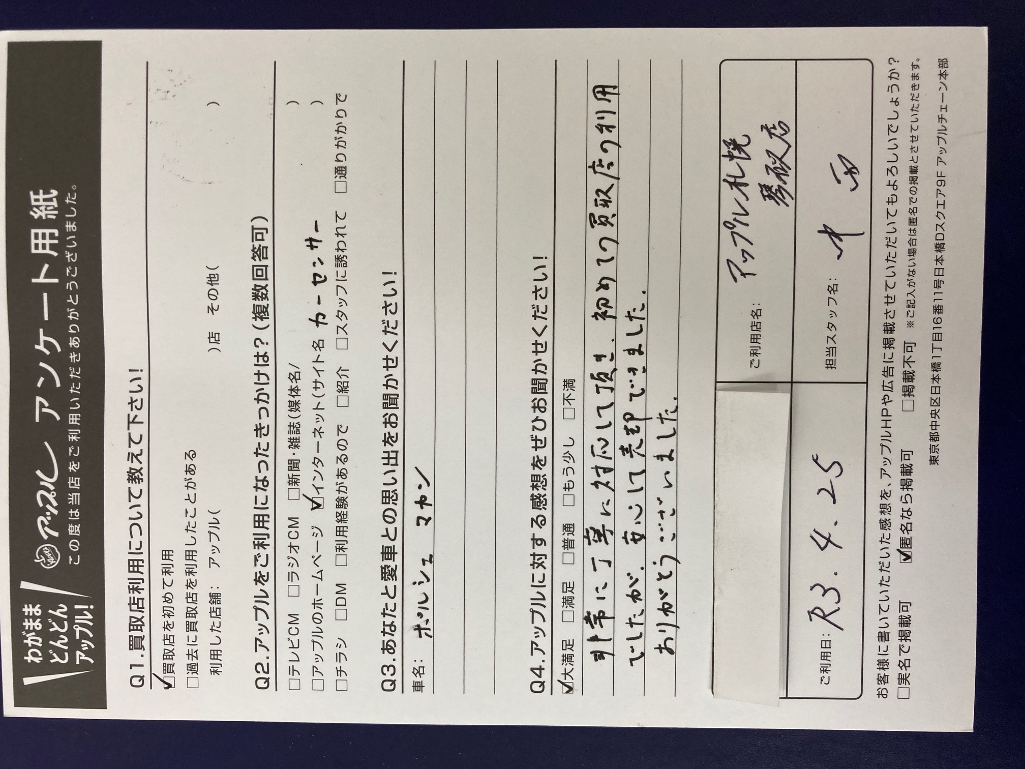 お車のご相談・ 査定だけでもOK! カンタン 入力 30秒 アップルがブランド買取始めました! お電話でも受付中! 受付時間10:00 ~ 18:00 0120-002-077 お車のご相談・ 査定だけでもOK! カンタン 入力 30秒 アップルがブランド買取始めました! お電話でも受付中! 受付時間10:00 ~ 18:00 0120-002-077 アップルがブランド買取始めました! お電話でも受付中! 受付時間10:00 ~ 18:00 0120-002-077 店舗情報 在庫車 スタッフ紹介 ブログ お客様の声 キャンペーン お得 無料査定 click お客様の声 ご記入日: 2021/04/25 中央区 T様 車名:ポルシェ マカン 〈アップルに対する感想をぜひお聞かせください!〉非常に丁寧な対応して頂き、初めての買取店の利用でしたが、安心して売却できました。ありがとうございました。 前へ 次へ お客様の声一覧を見る