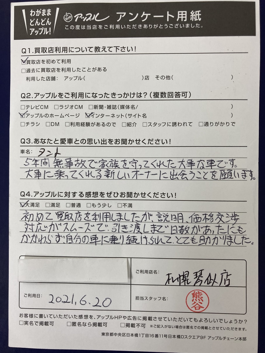 札幌市中央区 N様 車名:ダイハツ タント