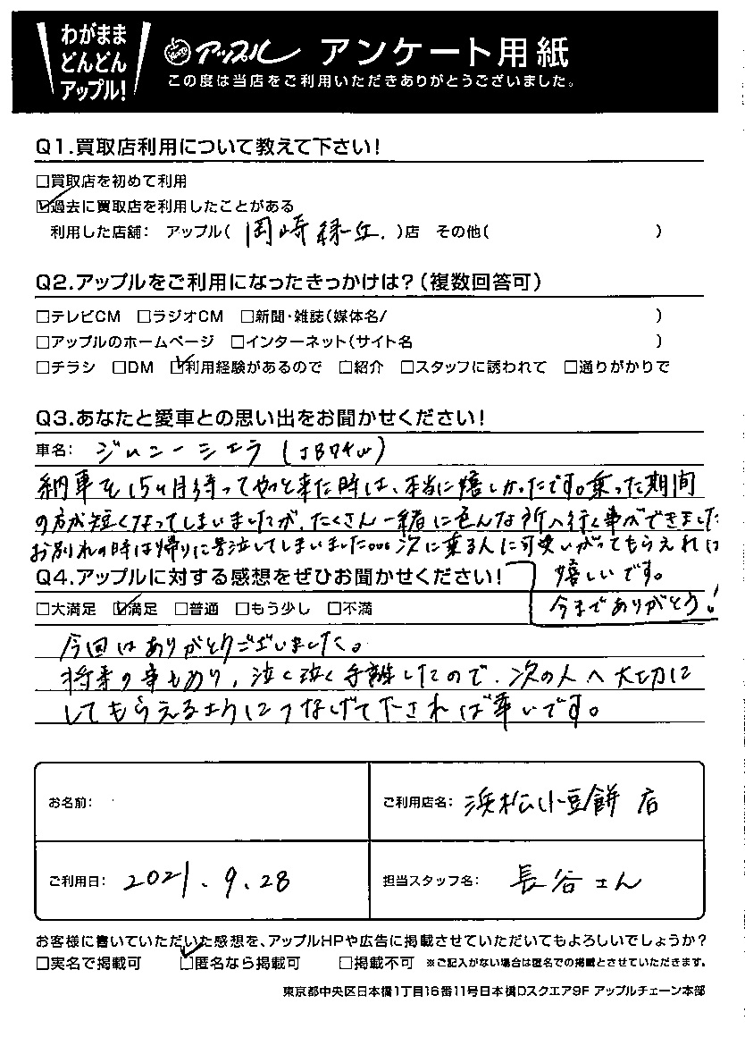 次に乗る人に可愛がってもらえれば嬉しいです。
