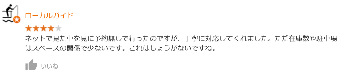 お車のご相談・ 査定だけでもOK! カンタン 入力 30秒 アップルがブランド買取始めました! お電話でも受付中! 受付時間10:00 ~ 19:00 0120-80-4148 お車のご相談・ 査定だけでもOK! カンタン 入力 30秒 アップルがブランド買取始めました! お電話でも受付中! 受付時間10:00 ~ 19:00 0120-80-4148 アップルがブランド買取始めました! お電話でも受付中! 受付時間10:00 ~ 19:00 0120-80-4148 店舗情報 在庫車 スタッフ紹介 ブログ お客様の声 キャンペーン お得 無料査定 click お客様の声 ご記入日: 2019/04/10 匿名希望様 ネットで見た車を見に予約無しで行ったのですが、丁寧に対応してくれました。ただ在庫数や駐車場はスペースの関係で少ないです。これはしょうがないですね。 前へ 次へ お客様の声一覧を見る