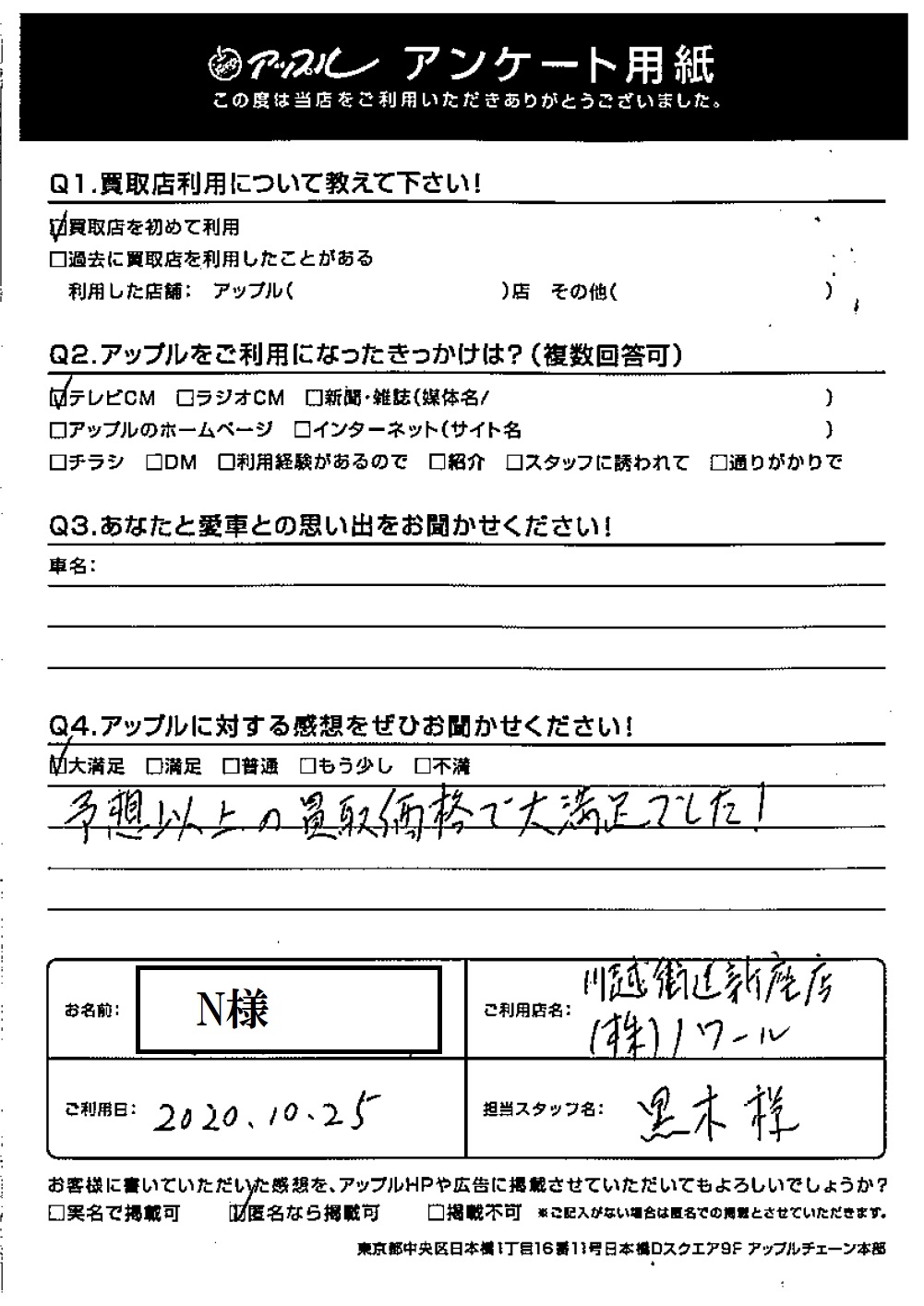 お車のご相談・ 査定だけでもOK! カンタン 入力 30秒 アップルがブランド買取始めました! お電話でも受付中! 受付時間10:00 ~ 19:00 048-478-9411 お車のご相談・ 査定だけでもOK! カンタン 入力 30秒 アップルがブランド買取始めました! お電話でも受付中! 受付時間10:00 ~ 19:00 048-478-9411 アップルがブランド買取始めました! お電話でも受付中! 受付時間10:00 ~ 19:00 048-478-9411 店舗情報 在庫車 スタッフ紹介 ブログ お客様の声 キャンペーン お得 無料査定 click お客様の声 ご記入日: 2020/10/25 N様 Q アップルに対する感想をぜひお聞かせください!感想:大満足予想以上の買取価格で大満足でした! 前へ 次へ お客様の声一覧を見る