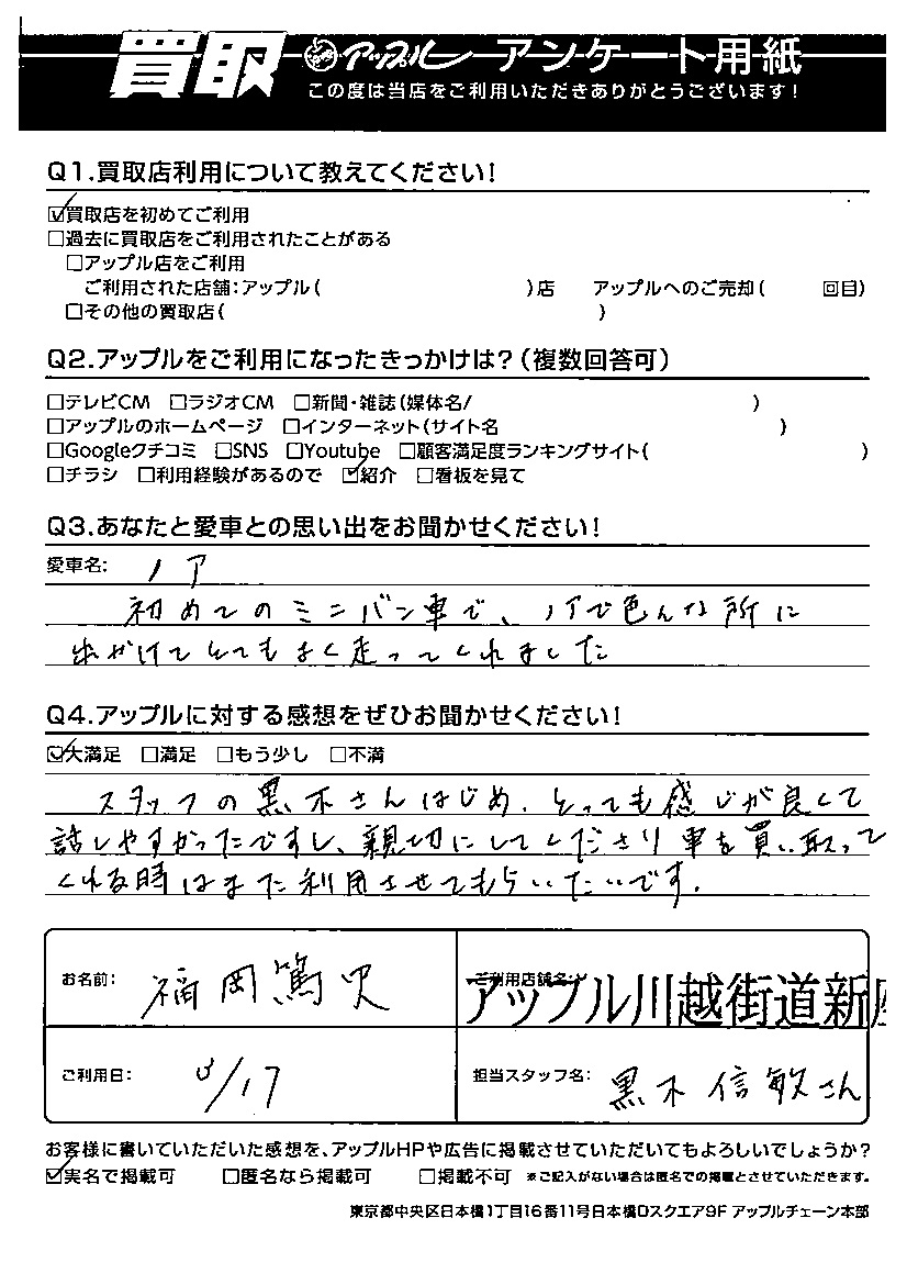 愛車:トヨタ ノア 買取店へのご売却は初めて 担当:黒木