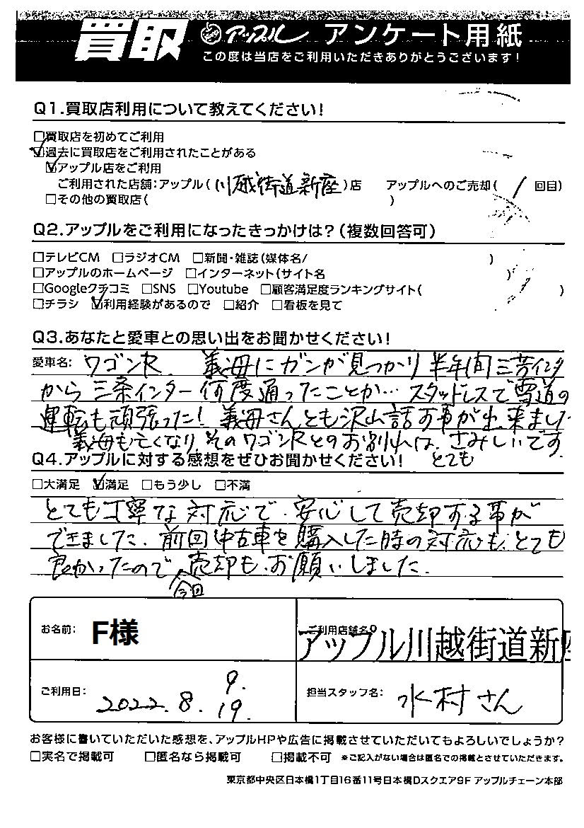 F様 車名:スズキ ワゴンR