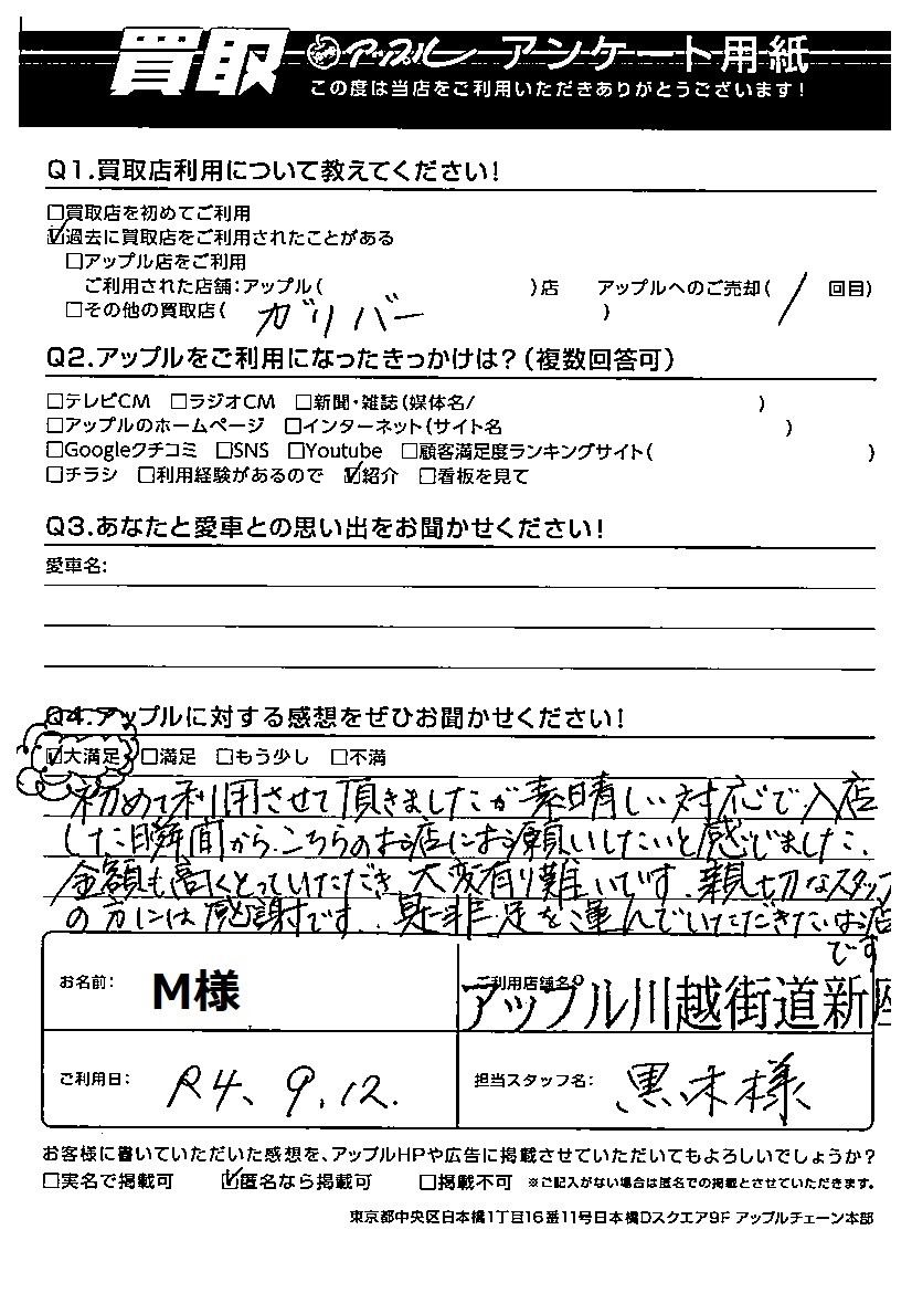 初めて利用させて頂きましたが、素晴しい対応で入店した瞬間から
