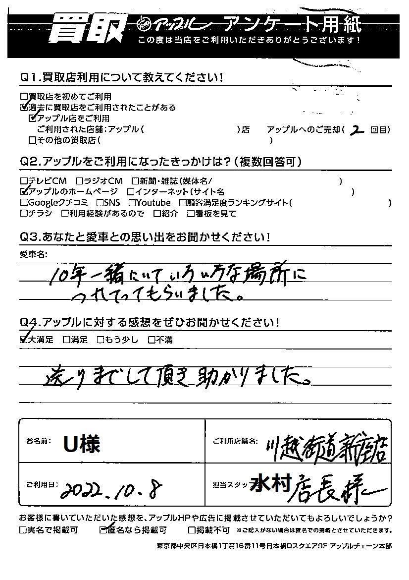 ご利用日:2022.10.8 お名前 U 様