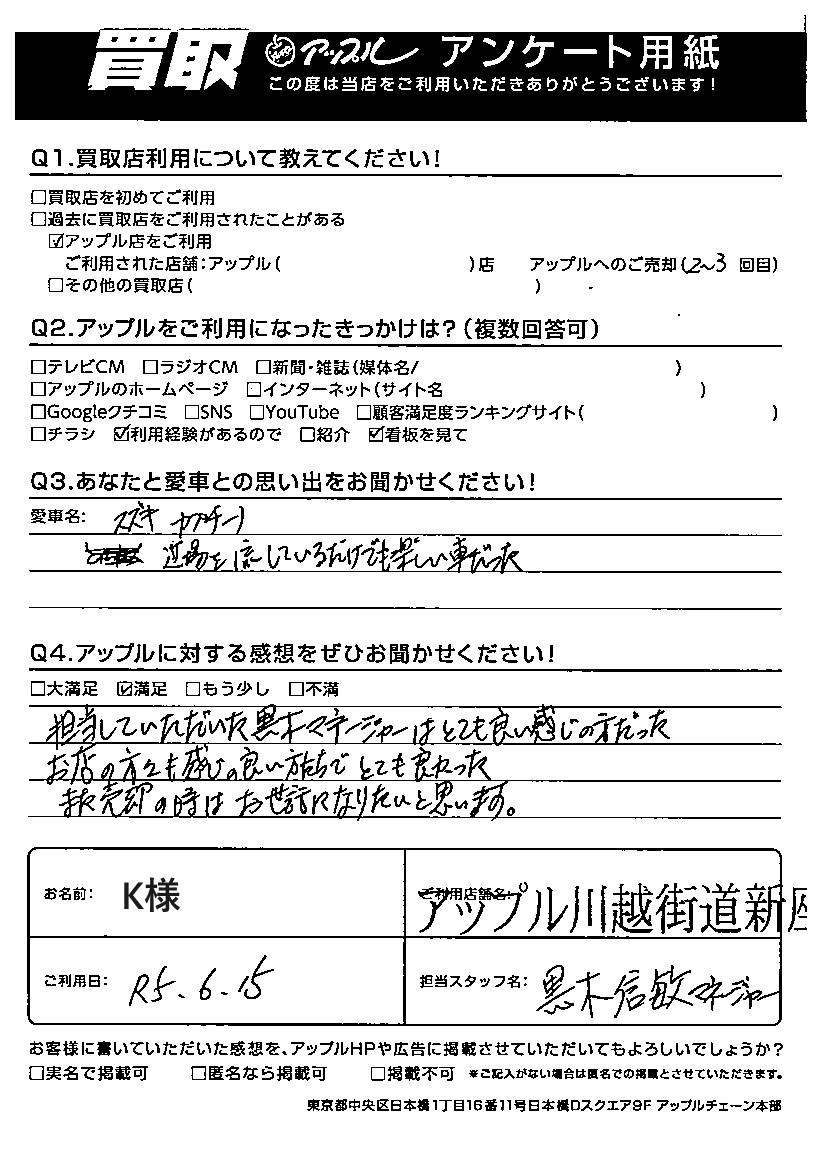 担当していただいた黒木マネージャーはとても良い感じの方だった